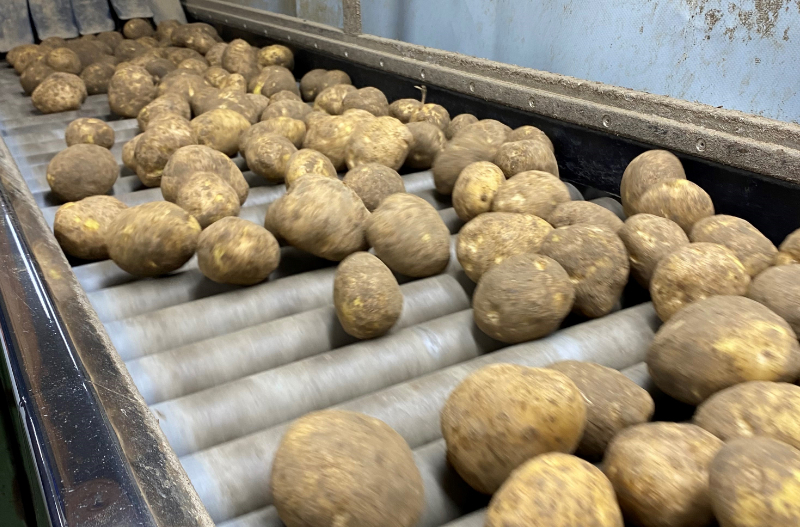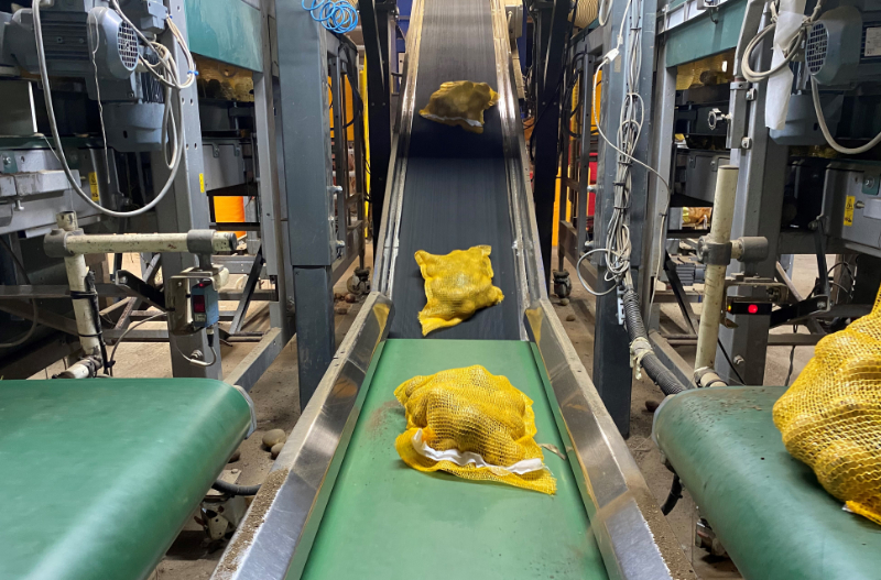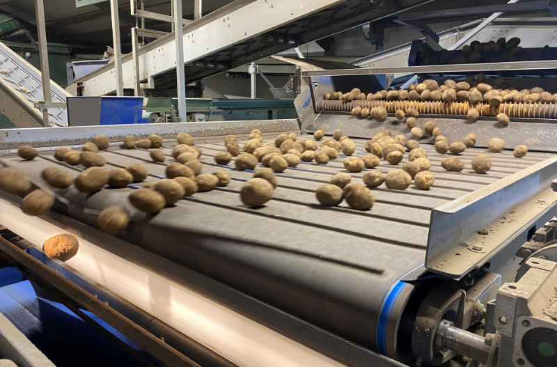 De goedgekeurde aardappelen vervolgen hun weg naar de verpakkingsafdeling.